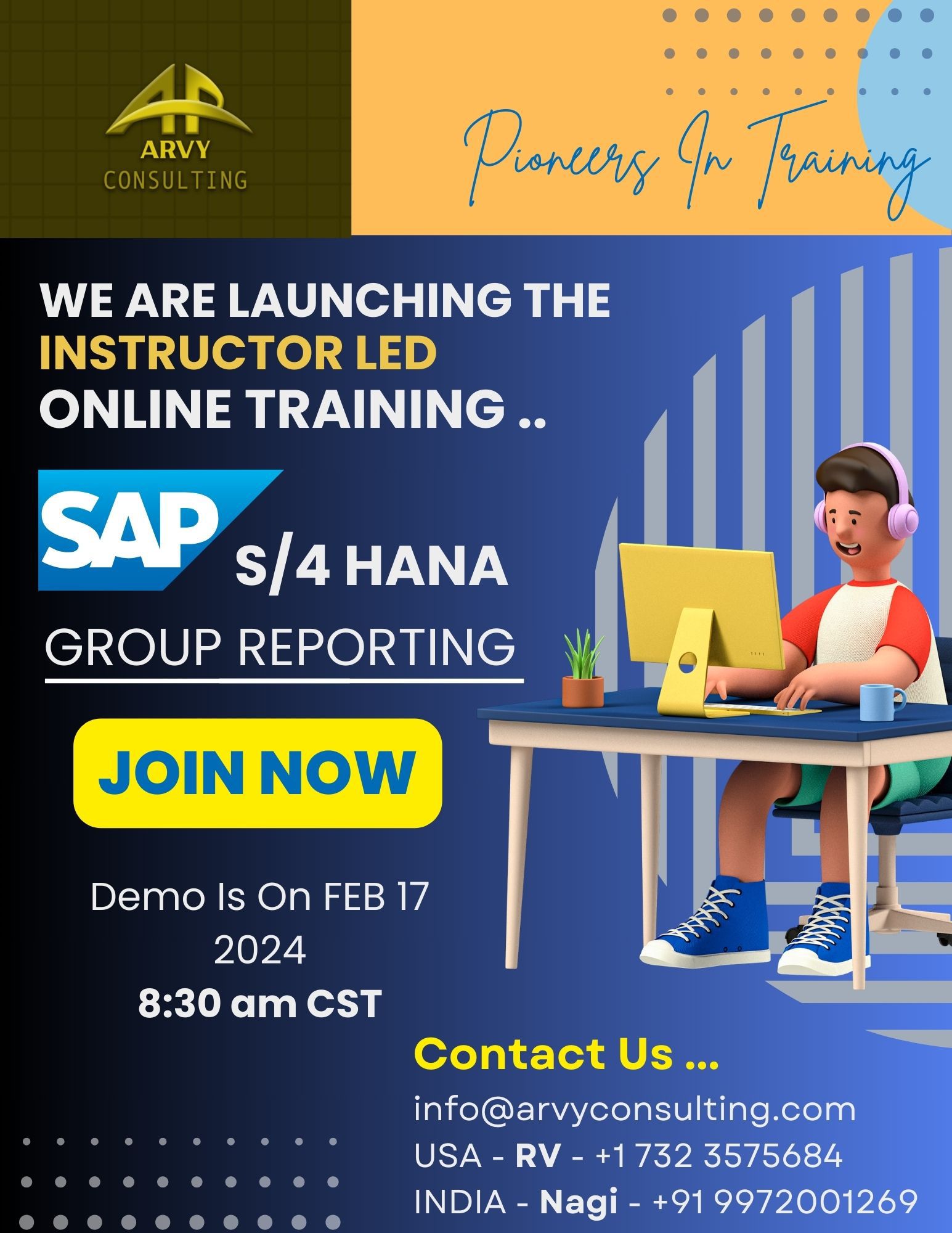 Welcome to Arvy Consulting where we empower businesses with cutting-edge solutions for streamlined financial reporting. Our S/4 HANA Group Reporting Training is designed to elevate your team's skills and optimize your financial reporting processes